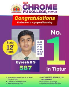 ತುಮಕೂರು (ಕುಲಾಲ್ ವರ್ಲ್ಡ್ ಡಾಟ್ ಕಾಮ್): 2023-24ನೇ ಶೈಕ್ಷಣಿಕ ಸಾಲಿನ ಪಿಯೂಸಿ ಪರೀಕ್ಷೆಯಲ್ಲಿ ತಿಪಟೂರು ಎಸ್ ಆರ್ ಎಸ್ ಕ್ರೋಮ್ ಪದವಿಪೂರ್ವ ಕಾಲೇಜಿನ ವಿದ್ಯಾರ್ಥಿ ಭೈರೇಶ್ ಬಿ .ಎಸ್ ಅವರು ರಾಜ್ಯಮಟ್ಟದಲ್ಲಿ ವಿಜ್ಞಾನ ವಿಭಾಗದಲ್ಲಿ 12ನೇ ಸ್ಥಾನ ಪಡೆದುಕೊಂಡಿದ್ದಾರೆ. ಒಟ್ಟು ಆರು ನೂರು ಅಂಕದಲ್ಲಿ 587 ಪಡೆದು ಶೇಖಡಾ 98% ಗಳಿಸಿದ್ದಾರೆ. ಆ ಮೂಲಕ ಕಾಲೇಜಿಗೇ ಪ್ರಥಮ ಸ್ಥಾನಿಯಾಗಿದ್ದಲ್ಲದೆ ರಾಜ್ಯಕ್ಕೆ ಆರನೇ ರಾಂಕ್ ಗಳಿಸಿದ್ದಾರೆ. ಇವರು ಕುಂಬಾರ ಸಮುದಾಯದವರಾದ ತಿಪಟೂರು ಬಳುವನೇರಲು ನಿವಾಸಿ ಸತೀಶ. ಬಿ ಮತ್ತು ಪವಿತ್ರಾ .ಆರ್ ದಂಪತಿಯ ಸುಪುತ್ರ.