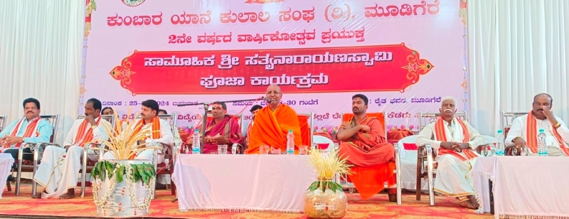 ಅವರು ಬುಧವಾರ ಮೂಡಿಗೆರೆ ಪಟ್ಟಣದ ರೈತ ಭವನದಲ್ಲಿ ಏರ್ಪಡಿಸಿದ್ದ ಕುಂಬಾರ ಯಾನೆ ಕುಲಾಲ ಸಂಘದ 2ನೇ ವಾರ್ಷಿಕೋತ್ಸವ ಪ್ರಯುಕ್ತ ಏರ್ಪಡಿಸಿದ್ದ ಶ್ರೀ ಸತ್ಯ ನಾರಾಯಣಸ್ವಮಿ ಪೂಜಾ ಕಾರ್ಯಕ್ರಮದಲ್ಲಿ ಆಶೀರ್ವಚನ ನೀಡಿ ಮಾತನಾಡಿದರು.