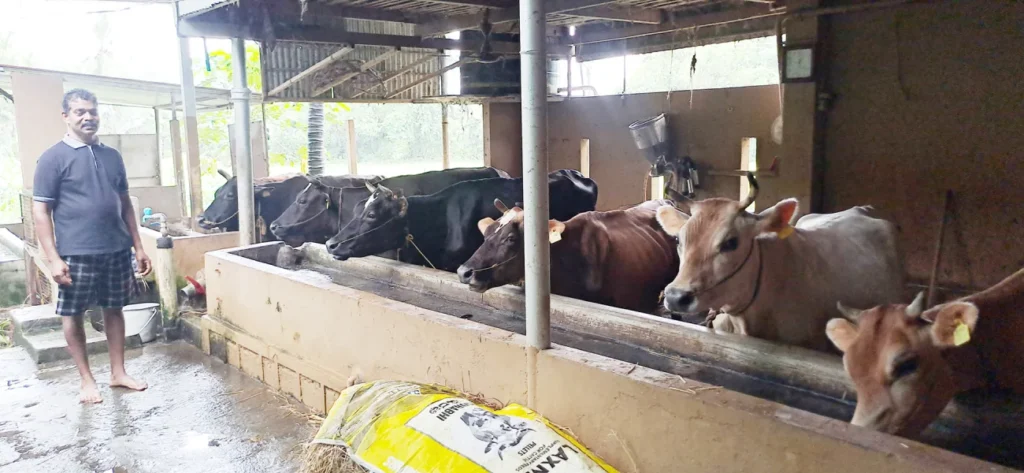 ಹೌದು, ೧೨ ದನಗಳನ್ನು ಸಾಕುತ್ತಿದ್ದೇನೆ. ಪ್ರತಿ ದಿನ ಹಾಲನ್ನು ಡೈರಿಗೆ ಕೊಡುತ್ತಾ ಬಂದಿದ್ದೇನೆ. ನಮ್ಮ ತೋಟದಲ್ಲಿಯೇ ಸಾಕಷ್ಟು ಹುಲ್ಲು ನಮಗೆ ಸಿಗುತ್ತವೆ. ದನಗಳ ಹಾಲಿನಿಂದ ಪ್ರತೀ ತಿಂಗಳು ಒಂದಷ್ಟು ಆದಾಯ ನನಗೆ ಲಭಿಸುತ್ತಿದೆ.