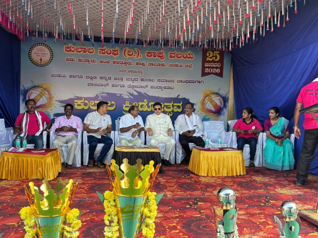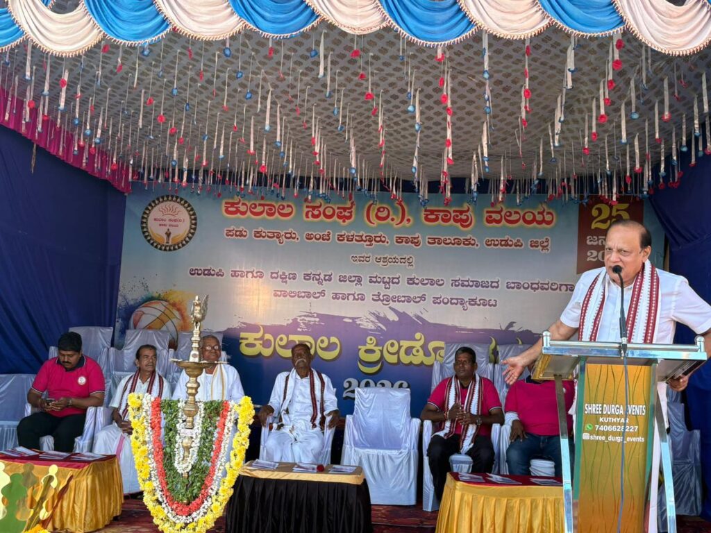 ಕಾಪು ವಲಯ ಕುಲಾಲ ಸಂಘ ಆಶ್ರಯದಲ್ಲಿ ಉಡುಪಿ ಹಾಗೂ ದಕ್ಷಿಣ ಕನ್ನಡ ಜಿಲ್ಲಾ ಕುಲಾಲ ಸಮಾಜ ಬಾಂಧವರಿಗಾಗಿ ಉಚ್ಚಿಲ ಸರಸ್ವತಿ ಮಂದಿರ ಶಾಲಾ ಮೈದಾನದಲ್ಲಿ ಆಯೋಜಿಸಿದ್ದ ವಾಲಿಬಾಲ್ ಹಾಗೂ ತ್ರೋಬಾಲ್ ಪಂದ್ಯಾಕೂಟವನ್ನು ಉದ್ಘಾಟಿಸಿ ಮಾತನಾಡಿದರು.