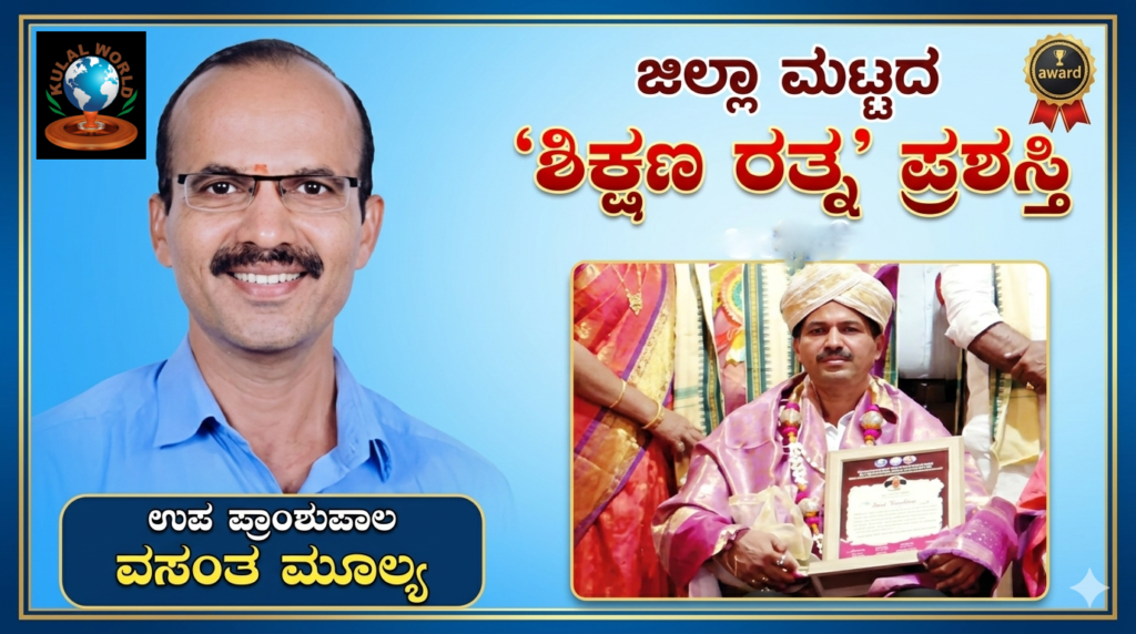 ಪುತ್ತೂರು(ಕುಲಾಲ ವರ್ಲ್ಡ್ ಡಾಟ್ ಕಾಮ್) : ಕರ್ನಾಟಕ ರಾಜ್ಯ ಶಾಲಾ ಶಿಕ್ಷಣ ಇಲಾಖೆ ನೌಕರರ ಸಂಘ ಬೆಂಗಳೂರು, ದಕ್ಷಿಣ ಕನ್ನಡ ಜಿಲ್ಲಾ ಘಟಕ ಹಾಗೂ ಪುತ್ತೂರು ಮತ್ತು ಕಡಬ ತಾಲೂಕು ಘಟಕದಿಂದ ಇತ್ತೀಚೆಗೆ ಪುತ್ತೂರು ಬಂಟರ ಭವನದಲ್ಲಿ ನಡೆದ ಶಾಲಾ ಶಿಕ್ಷಣ ಇಲಾಖೆಯ ನೌಕರರ ಜಿಲ್ಲಾ ಶೈಕ್ಷಣಿಕ ಸಮಾವೇಶ ಹಾಗೂ ಪ್ರಶಸ್ತಿ ಪ್ರದಾನ ಸಮಾರಂಭದಲ್ಲಿ ಕರ್ನಾಟಕ ವಿಧಾನಸಭಾ ಸಭಾಧ್ಯಕ್ಷರು, ಶಾಸಕರು, ವಿಧಾನ ಪರಿಷತ್ ಶಾಸಕರು, ಗಣ್ಯ ಅತಿಥಿಗಳ ಉಪಸ್ಥಿತಿಯಲ್ಲಿ ಕೊಂಬೆಟ್ಟು ಸರಕಾರಿ ಪದವಿ ಪೂರ್ವ ಕಾಲೇಜಿನ ಉಪ ಪ್ರಾಂಶುಪಾಲ ವಸಂತ ಮೂಲ್ಯ ಅವರಿಗೆ ಜಿಲ್ಲಾ ಮಟ್ಟದ ಶಿಕ್ಷಣ ರತ್ನ ಪ್ರಶಸ್ತಿ-2026ಯನ್ನು ನೀಡಿ ಗೌರವಿಸಲಾಯಿತು. ಪ್ರಾಮಾಣಿಕ ಸೇವೆ ಜಾಗೃತ ಮನಸ್ಸು, ಶಿಕ್ಷಕ ಸಮುದಾಯಕ್ಕೆ ನೀಡುತ್ತಿರುವ ನೆರವನ್ನು ಸ್ಮರಿಸಿ ಕರ್ನಾಟಕ ರಾಜ್ಯ ಶಾಲಾ ಶಿಕ್ಷಣ ಇಲಾಖೆ ನೌಕರರ ಸಂಘ (ರಿ) ದಕ್ಷಿಣ ಕನ್ನಡ ಜಿಲ್ಲಾ ಘಟಕ ವತಿಯಿಂದ ಜಿಲ್ಲಾ ಮಟ್ಟದ ಶಿಕ್ಷಣ ರತ್ನ ಪ್ರಶಸ್ತಿ ಪ್ರದಾನ ಮಾಡಿ ಗೌರವಿಸಲಾಗಿದೆ.