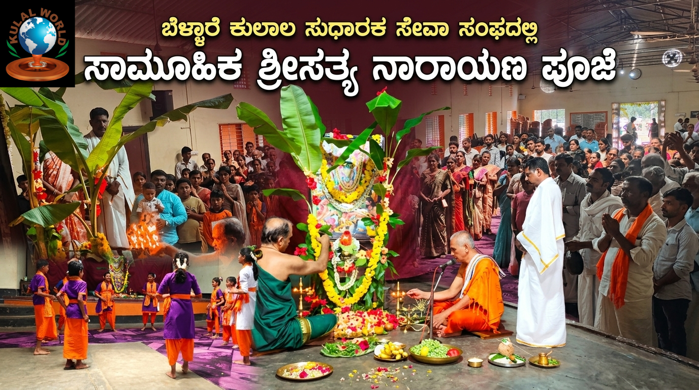 ಸುಳ್ಯ(ಕುಲಾಲ ವರ್ಲ್ಡ್ ಡಾಟ್ ಕಾಮ್): ಕುಲಾಲ ಸುಧಾರಕ ಸೇವಾ ಸಂಘ ಸುಳ್ಯ ಬೆಳ್ಳಾರೆ ವತಿಯಿಂದ 29 ನೇ ವರ್ಷದ ಸಾಮೂಹಿಕ ಶ್ರೀ ಸತ್ಯನಾರಾಯಣ ಪೂಜೆ ಮಾ. 29 ರಂದು ಬೆಳ್ಳಾರೆ ಅಜಪಿಲ ಶ್ರೀ ಮಹಾಲಿಂಗೇಶ್ವರ ದೇವಸ್ಥಾನದ ಸಭಾಭವನದಲ್ಲಿ ನಡೆಯಿತು.
