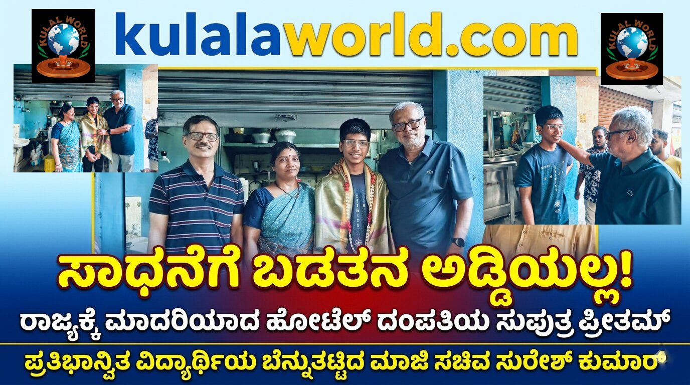 ಬೆಂಗಳೂರು(ಕುಲಾಲ ವರ್ಲ್ಡ್ ಡಾಟ್ ಕಾಮ್): ಬೆಂಗಳೂರಿನ ಗದ್ದಲದ ನಡುವೆ, ಒಂದು ಪುಟ್ಟ ಹೋಟೆಲ್ನಲ್ಲಿ ತಂದೆ-ತಾಯಿ ಸುರಿಸಿದ ಬೆವರಿನ ಹನಿಗಳು ಇಂದು ಮಗನ ಯಶಸ್ಸಿನ ಮೂಲಕ ಮುತ್ತುಗಳಾಗಿ ಅರಳಿವೆ. ಹೌದು, ರಾಜಾಜಿನಗರದ ವಿಎಂಎಸ್ ಪ್ರೌಢಶಾಲೆಯ ವಿದ್ಯಾರ್ಥಿ ಪ್ರೀತಮ್ ಎಂ, 2025-26ನೇ ಸಾಲಿನ ಎಸ್ಎಸ್ಎಲ್ಸಿ ಪರೀಕ್ಷೆಯಲ್ಲಿ 625ಕ್ಕೆ 620 (99.2%) ಅಂಕಗಳನ್ನು ಪಡೆಯುವ ಮೂಲಕ ರಾಜ್ಯವೇ ಹೆಮ್ಮೆಪಡುವಂತಹ ಸಾಧನೆ ಮಾಡಿದ್ದಾರೆ.