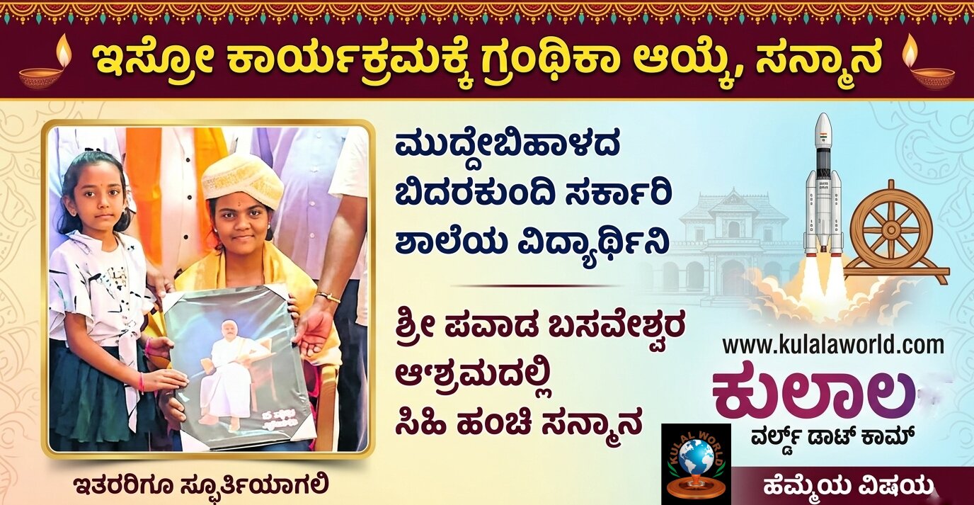 ಮುದ್ದೇಬಿಹಾಳ (ಕುಲಾಲ ವರ್ಲ್ಡ್ ಡಾಟ್ ಕಾಮ್): ಮುದ್ದೇಬಿಹಾಳ ತಾಲ್ಲೂಕಿನ ಬಿದರಕುಂದಿ ಗ್ರಾಮದ ಸರ್ಕಾರಿ ಪ್ರೌಢಶಾಲೆಯ ಒಂಬತ್ತನೇ ತರಗತಿಯ ಪ್ರತಿಭಾನ್ವಿತ ವಿದ್ಯಾರ್ಥಿನಿ ಗ್ರಂಥಿಕಾ ಕುಂಬಾರ, ಭಾರತೀಯ ಬಾಹ್ಯಾಕಾಶ ಸಂಶೋಧನಾ ಸಂಸ್ಥೆ (ISRO) ಆಯೋಜಿಸಿರುವ ಪ್ರತಿಷ್ಠಿತ ‘ಯುವಿಕಾ-2026’ (ಯುವ ವಿಜ್ಞಾನಿ ಕಾರ್ಯಕ್ರಮ) ಕ್ಕೆ ಆಯ್ಕೆಯಾಗುವ ಮೂಲಕ ನಾಡಿಗೆ ಕೀರ್ತಿ ತಂದಿದ್ದಾರೆ.